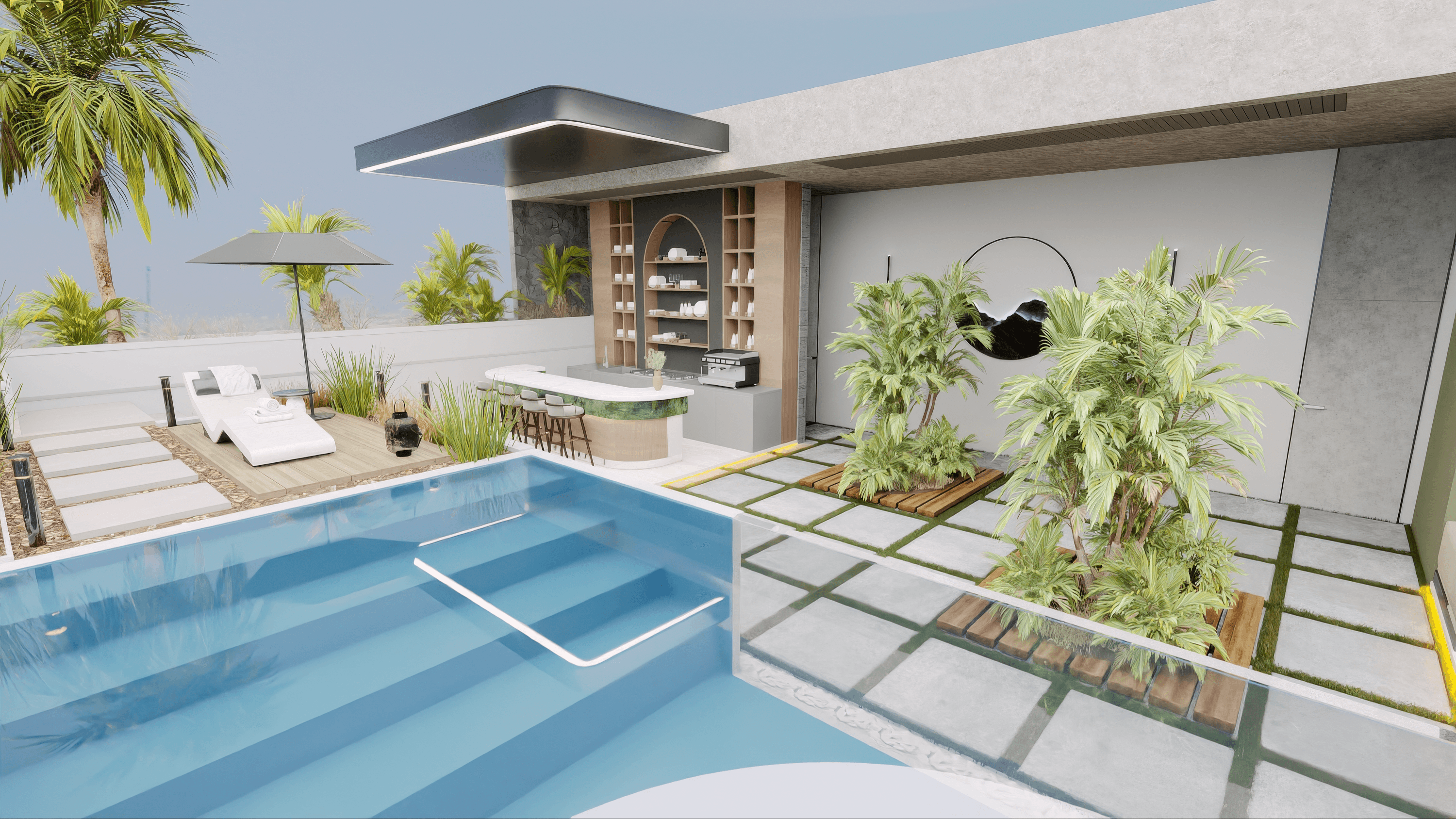 Rooftop avec piscine et espaces de détente